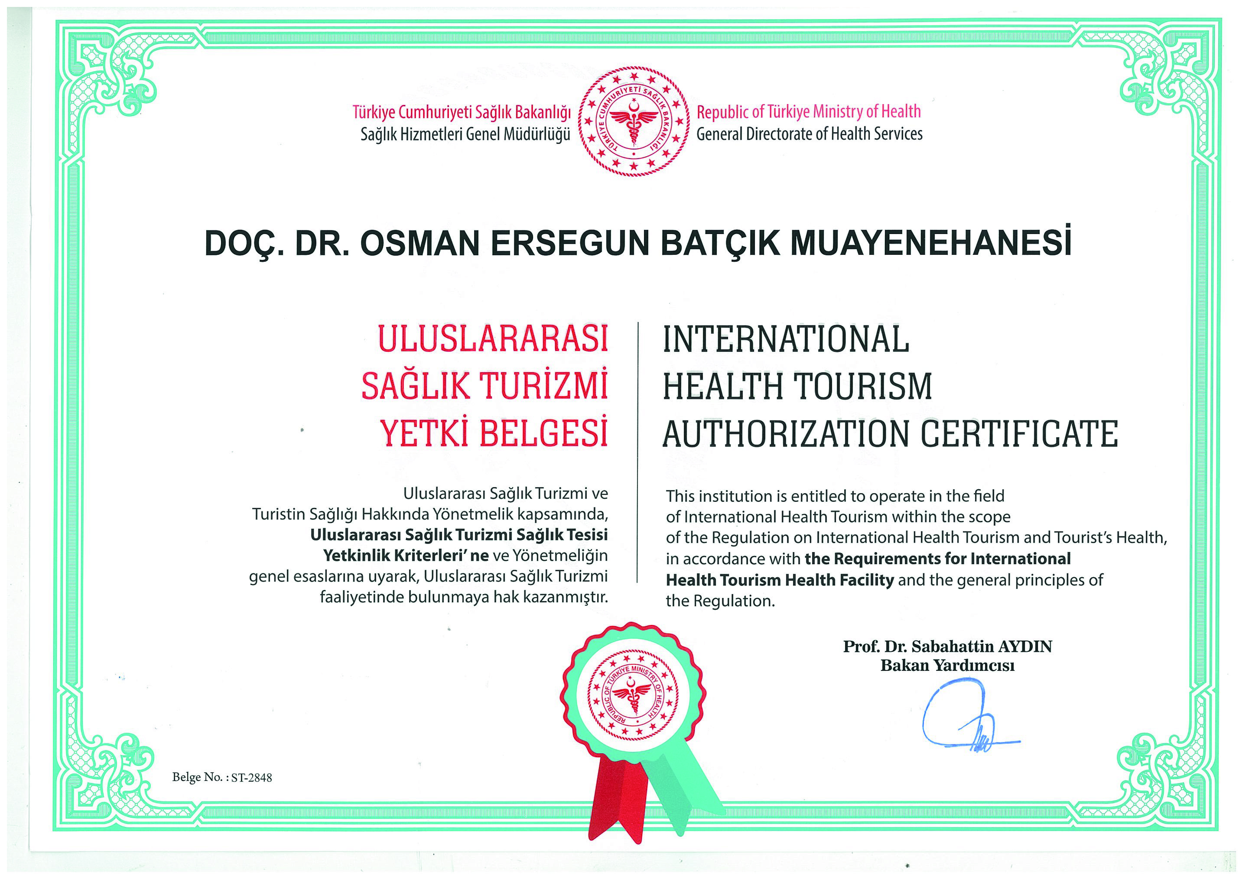 Uluslararası Sağlık Turizmi Yetki Belgesi