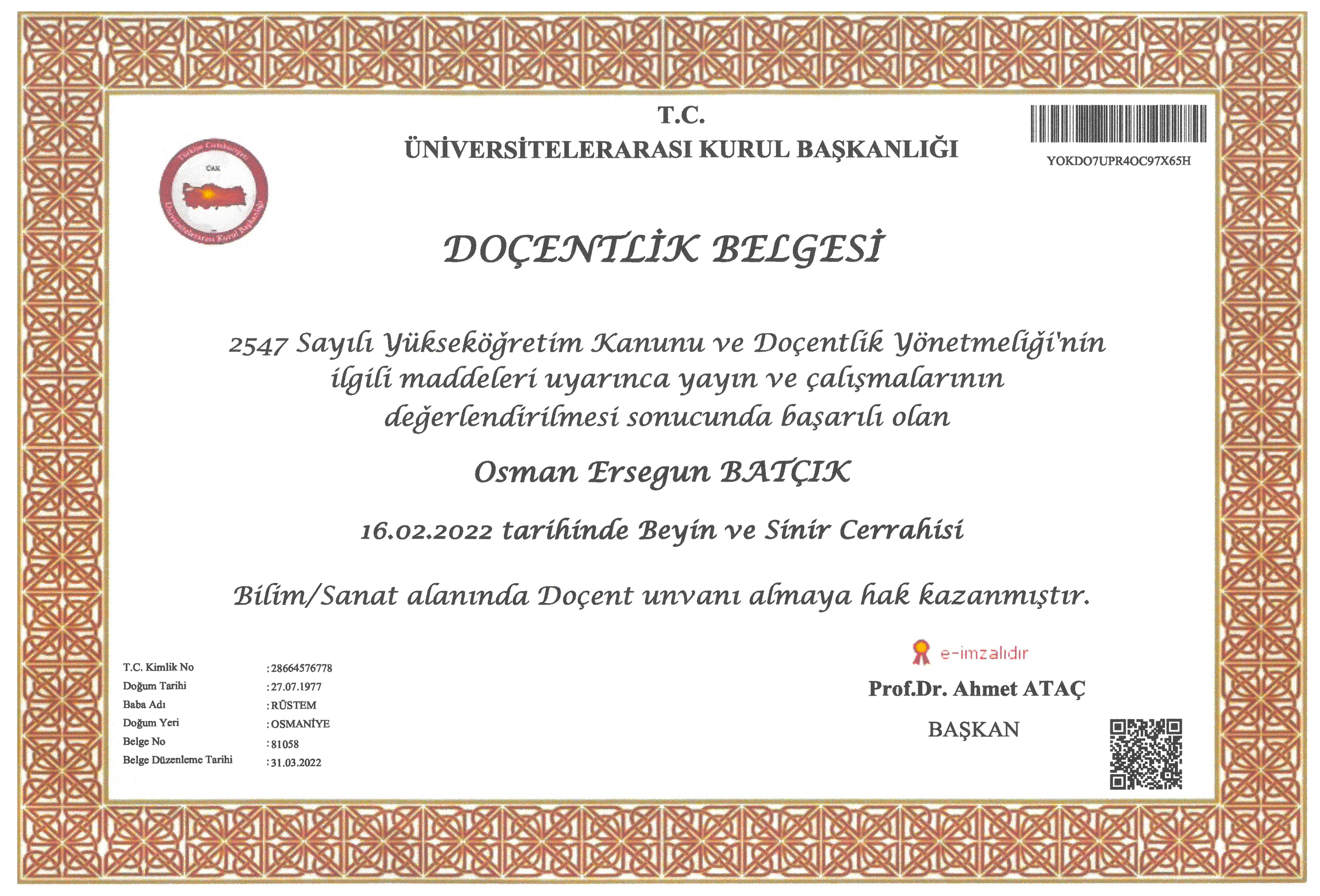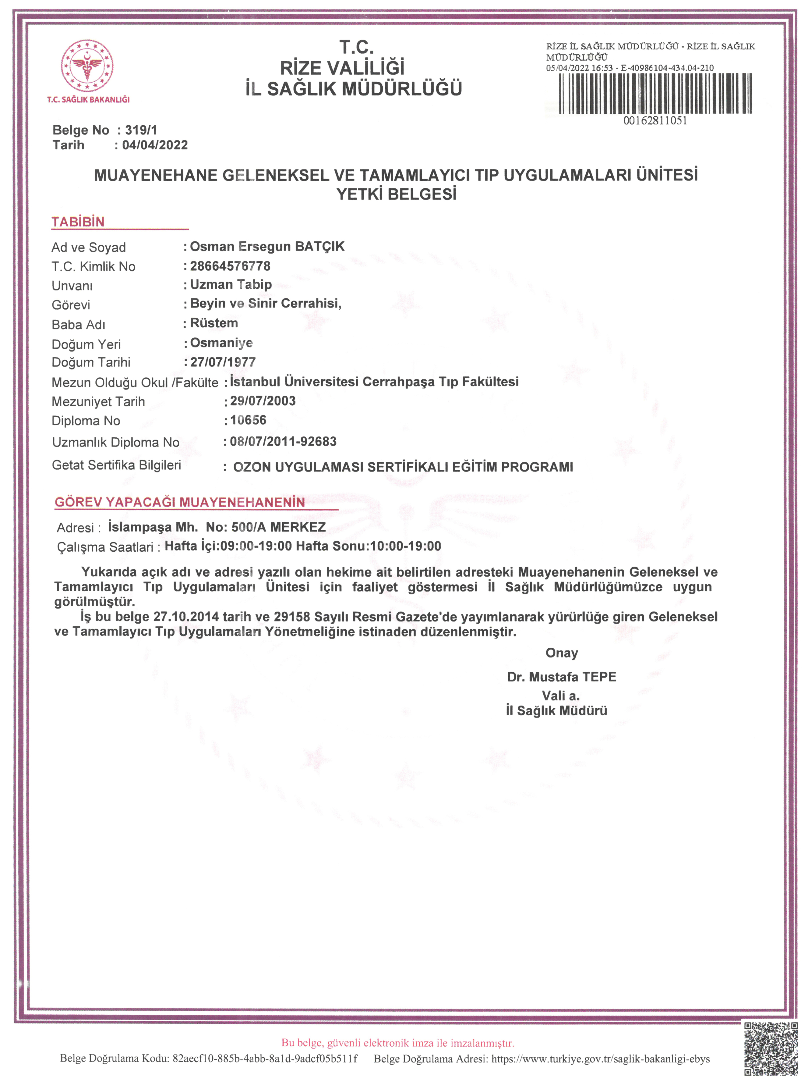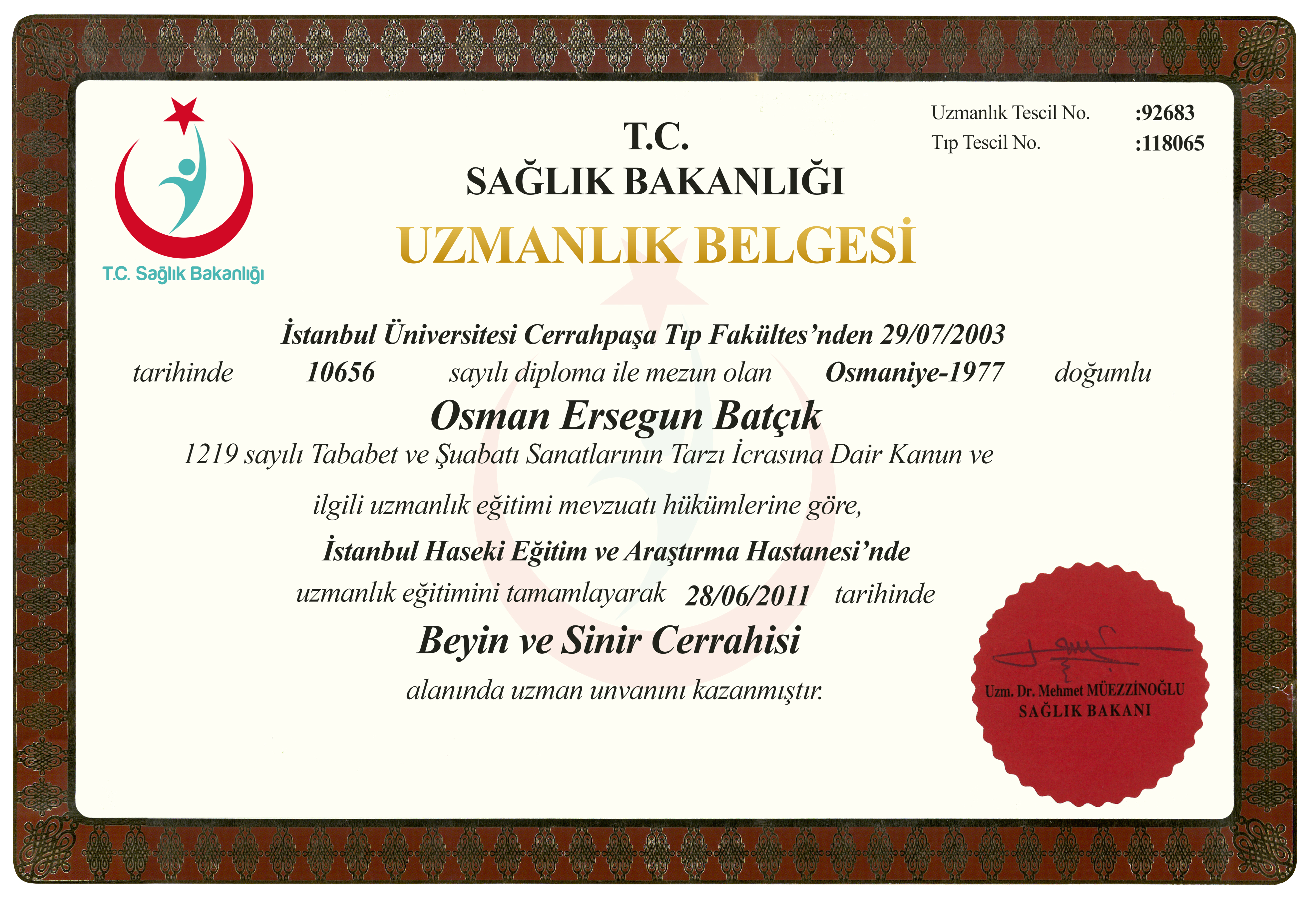 Sağlık Bakanlığı Uzmanlık Belgesi